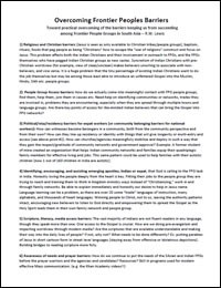 In Frontier People Groups, pioneer workers are generally limited to starting with non-believers. 60% of Unreached People Groups are still Frontier People Groups. In the other 40% of Unreached Groups it is often possible to partner with same-culture believers.