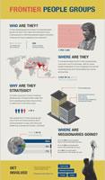 How neglected are Frontier People Groups?The vast majority of mission prayer, giving and laborers focuses on strengthening Christians where Christians are already present. Only a very small portion of mission prayer and resources go to Unreached People Groups (UPGs) at all, and only a tiny fraction of this goes to Frontier Unreached People Groups (FPGs). Very few mission agencies and churches send even 1% of their missionaries to Frontier Peoples.